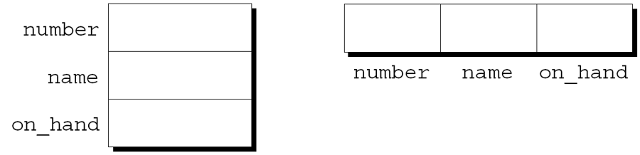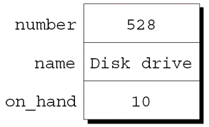} item = {.number = 528, .name = "Disk drive", .on_hand = 10};