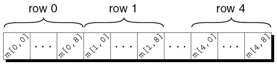 行主序存储数组, 从第 0 行开始, 接着第 1 行, 依此类推.